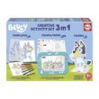 Ce set créatif EDUCA propose trois activités manuelles autour de l'univers de Bluey : décoration avec autocollants colorés, assemblage de personnages en carton prédécoupés et jeu avec les figurines 3D finalisées. Parfait pour développer la motricité fine des enfants dès 3 ans tout en stimulant leur imagination.