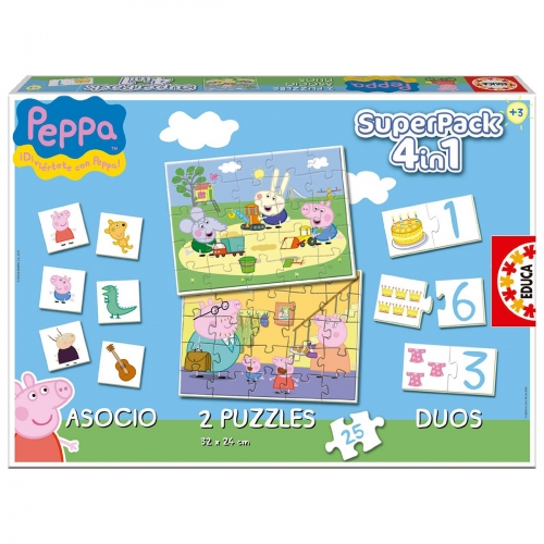 Amuse-toi avec ce super pack de jeux Peppa Pig. Retrouve Peppa dans de nouvelles aventures, tu peux peux y jouer seul, en famille ou avec tes amis. 4 jeux composent ce super pack : 2 puzzles, 1 jeu d'association et 1 jeu de nombres.