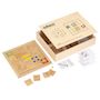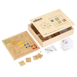 «Marble Code» est une traduction dans une forme spécifique de traitement du langage du code. D'une manière pratique, l'enfant expose un chemin où le marbre trouve son chemin. En guidant le marbre le long du chemin à travers des mouvements contrôlés, la motricité est stimulée et l'axe du corps est traversé. Contenu:. *cadre en bois. * 40 blocs de jeu en bois. * 6 cartes d'affectation en plastique, imprimées double face. * 2 billes. * Boîte en bois (43,5 x 33,5 x 7,5 cm)