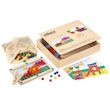 Utilisez votre main ou la pincette pour mettre les balles dans le cadre. Faites vos propres créations ou utilisez l'une des cartes. Contenu: 240 boules en bois en 8 couleurs vives 6x2 Cartes d'affectation2 Frames de mosaïque transparentes2 Boîte Tweezerswooden (43,5 x 33,5 x 7,5 cm)