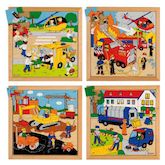 Puzzle activités dans la rue: le lot de 4 puzzles - jeu Montessori