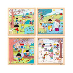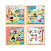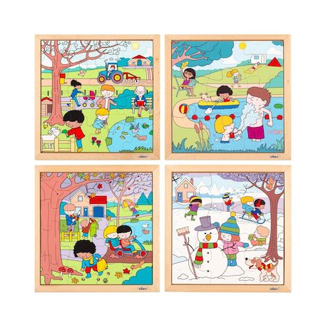 Contenu:. Un ensemble de 4 saisons puzzles:. Printemps (16 pièces). Été (9 pièces). Automne (16 pièces). Hiver (9 pièces)