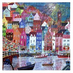 Le paysage écossais enchanteur de la peintre Nikki Monaghan met en scène un charmant village portuaire à explorer. Flânez le long de cette rue pavée en bord de mer, admirez les bateaux ou attardez-vous pour déguster un whisky dans un pub rustique en pierre.