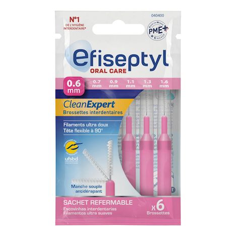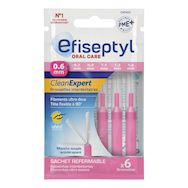 La brossette interdentaire Efiseptyl CleanExpert est: - Ultra fine et cylindrique : Elle est idéale pour accéder aux espaces interdentaires étroits. - Ultra douce : Ses filaments sont particulièrement adaptés pour les gencives sensibles. - Ergonomique : Son col coudable à 90° facilité l'accès aux dents du fond. Son manche flexible et antidérapant permet une parfaite prise en main.