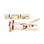 Le jeu de croquet, un altique des jeux de plein air qui, en 1900, était une discipline olympique ! Tracez votre parcours dans le jardin avec les arceaux en métal. Avec le maillet, faites circuler la boule en-dessous des arceaux avec le moins de coups possible. Qui sera le prochain champion Hauteur des maillets : 80 cm. Nombre d'arceaux : 10. Jeu de croquet en bois (4 joueurs) de la marque Egmont Toys. Référence 600012. Type: Jeu d'extérieur