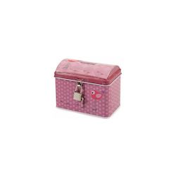 Tirelire en métal type coffre au trésor avec cadenas pour garder ses sous au chaud.