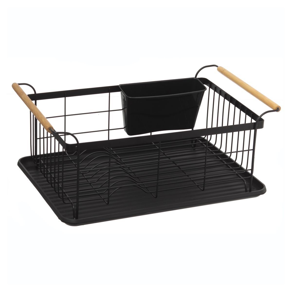 Un égouttoir aussi pratique que stylé ! Réalisé en métal noir, il dispose d'un compartiment pour faire sécher vos couverts et d'une base amovible pour récupérer l'eau. On aime la note de bois au niveau des anses qui lui donne une note déco !