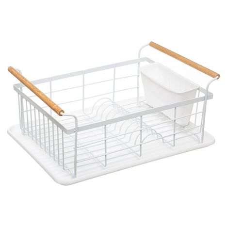 Egouttoir en métal et en bois blanc