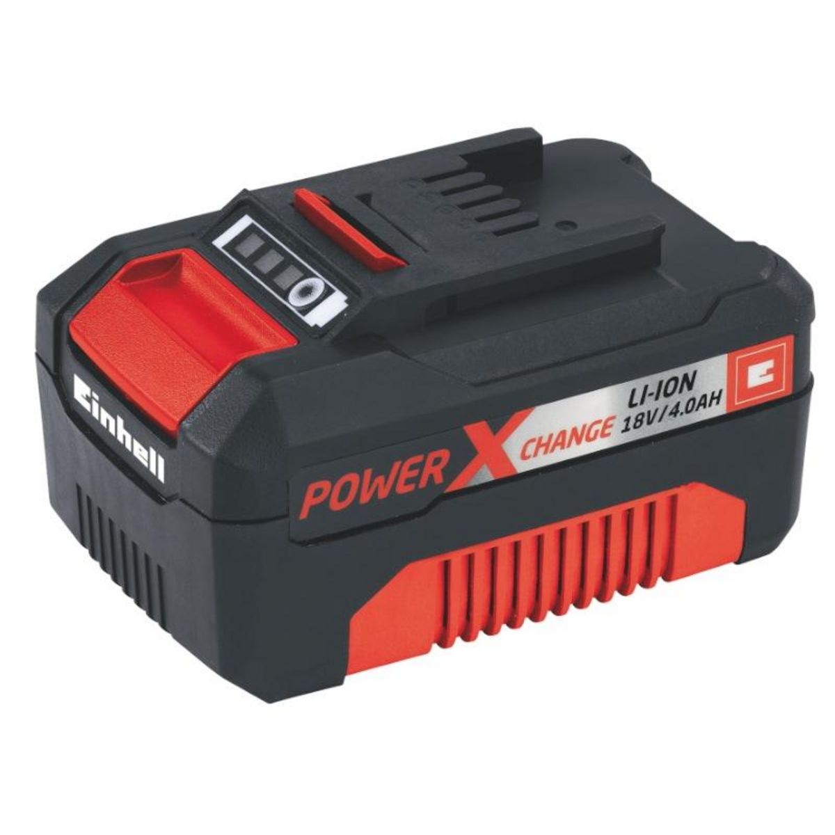 Batterie au Lithium-Ion, 18V 4,0 Ah Power-X-ChangeCaractéristiques : 7 en 1 ABS: Le système actif de gestion de la batterie Einhell Témoin LED du niveau de charge, 3 positions Une technique moderne: le microprocesseur assure la gestion et le contrôle permanent des paramètres tels que température, te