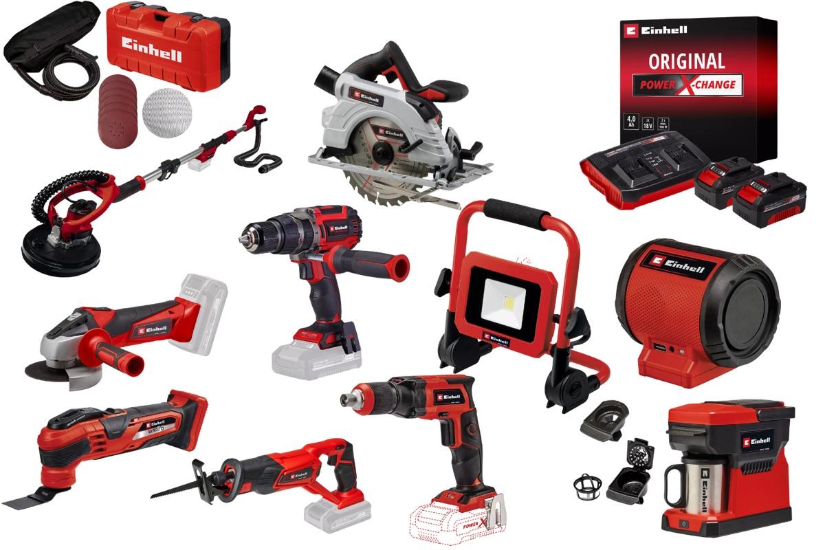Kit chantier sans fil Einhell – 10 outils Power X-Change + 2 batteries 4.0Ah + chargeur