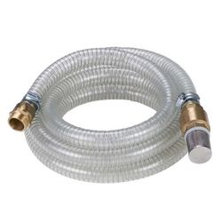 Flexible d'aspiration indéformable pour une utilisation avec de l'eau sanitaire: Le flexible d'aspiration Einhell est un flexible indéformable de 25 mm de diamètre et de 4 m de longueur. Avec son raccord à filet femelle 42 mm (1 pouce ¼) et le raccord en laiton à filet mâle 33,3 mm (1 pouce) fourni, le flexible d'aspiration Einhell est adapté aux pompes d'arrosage et aux groupes de surpression (automatiques ou non). Flexible transparent à gaine tissée et fil d'acier très solide, idéal pour une utilisation avec de l'eau sanitaire Le flexible d'aspiration comprend un raccord en laiton à filet mâle de 33,3 mm (1 pouce). Il est également vendu avec une crépine en laiton avec clapet anti-retour intégré en inox à mailles fines, et avec deux colliers de serrage en acier pour une fixation sûre.