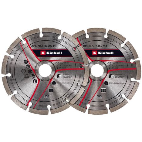 Le kit de disques de coupe diamant 150 mm Einhell Original est un accessoire très pratique pour les rainureuses. Associés à une rainureuse, les deux disques de coupe diamant permettent de découper efficacement des rainures et encoches dans les murs. Ils sont adaptés spécifiquement pour la pierre, le béton, le carrelage, la céramique, le grès cérame, le marbre et le granit. Grâce à leur alésage central de 22,23 mm, les disques de coupe diamant peuvent être utilisés avec la rainureuse TE-MA 1700 Einhell et avec des équipements d&rsquo,autres fabricants. Sont inclus dans le kit 2 disques de coupe diamant d&rsquo,une épaisseur de 1,8 mm et d&rsquo,un diamètre de 150 mm.