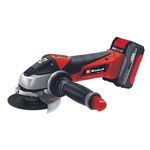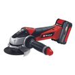 La meuleuse d'angle sans fil TE-AG 18/115 Li (1 x 4,0 Ah) Einhell est immédiatement prête à l&rsquo,emploi pour meuler, découper ou polir. Elle permet de travailler avec efficacité et adresse des matériaux en métal et en pierre. L'outil est équipé de la batterie très appréciée de la gamme Power X-Change Einhell, qui se combine avec tous les outils et appareils de cette même gamme. C&rsquo,est la meuleuse d&rsquo,angle la plus légère de sa catégorie. Fonction de démarrage progressif et dispositif anti-redémarrage pour une meilleure sécurité de l&rsquo,utilisateur. Le capot de protection du disque de coupe est doté d&rsquo,un système de réglage rapide. La protection contre les surcharges assure la longévité, et l&rsquo,amenée d&rsquo,air modifiée permet un meilleur refroidissement. Le carter d&rsquo,engrenage en aluminium est de conception robuste. Grâce au désaccouplement du moteur et de l&rsquo,engrenage, la meuleuse sans fil (disques de diamètre 115 mm max., profondeur de coupe 28 mm) est très silencieuse. La poignée auxiliaire flexible peut être fixée dans 3 positions pour faciliter son utilisation dans des zones difficiles d&rsquo,accès. La forme compacte avec surface Softgrip ergonomique assure une utilisation agréable. Grâce à l&rsquo,affichage de la capacité, l&rsquo,état de charge de la batterie est toujours visible. Une batterie 2,5 Ah ou supérieure est conseillé pour une performance optimale. L&rsquo,outil est vendu avec la batterie 4,0 Ah et le chargeur PXC, et avec 1 disque de coupe et 1 disque abrasif à lamelles.