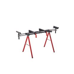 - Le piètement stationnaire pour scie à onglet se replie pour gagner de la place.