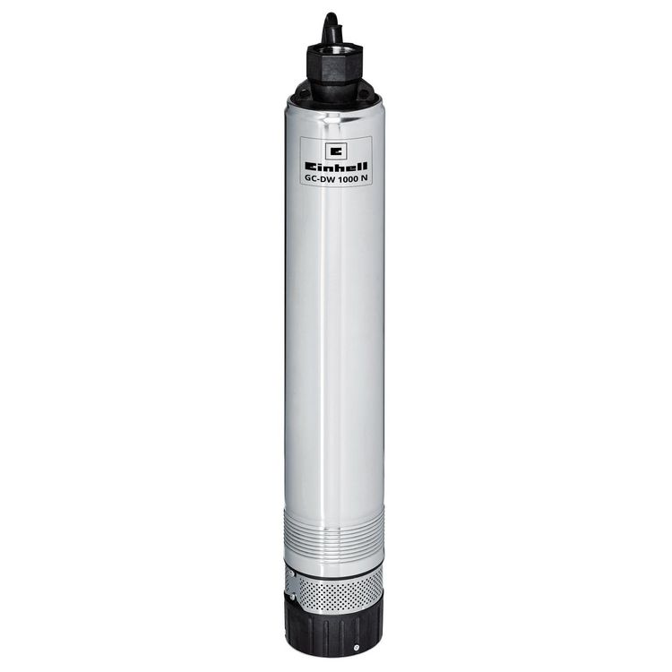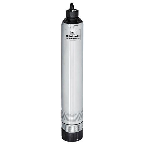 La pompe de forage Einhell GC-DW 1000 N est une pompe immergée robuste pour puiser de l&rsquo,eau claire. On peut descendre cette pompe au corps fin jusqu&rsquo,à une profondeur de 19 mètres avec le filin livré en série et la fixer solidement grâce aux deux anses de suspension. Une turbine à plusieurs étages assure une pression forte et uniforme. Le carter est en inox anti-corrosion et le raccord à compression robuste est équipé d&rsquo,un insert en inox. Le filtre est également en inox. Le joint torique haut de gamme assure une longue durée de vie. Un disjoncteur thermique protège la pompe lors d&lsquo,une surcharge. Le raccord pour tuyau est bien accessible, intégré sur le haut de la pompe.