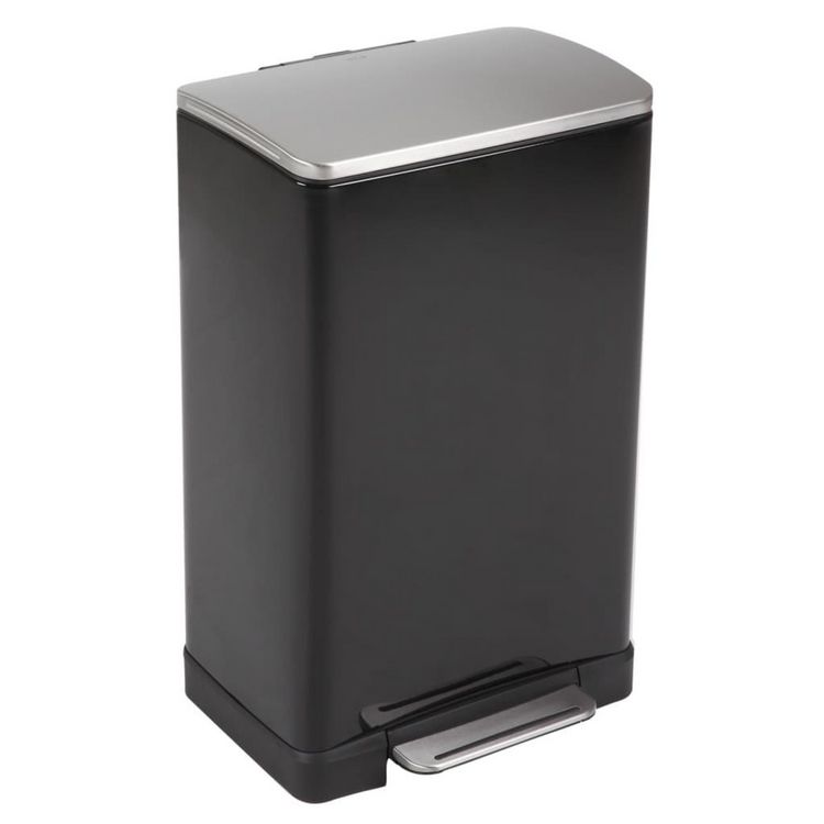 En savoir +La poubelle a pedale E-Cube noire mate de la marque EKO est une poubelle rectangulaire elegante avec une pedale extra large et un seau interieur en plastique de 40 L.