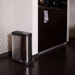 Cette poubelle a pedale avec couvercle en plastique est en acier inoxydable brosse et constitue une solution de confinement des dechets ideale pour toute cuisine moderne.