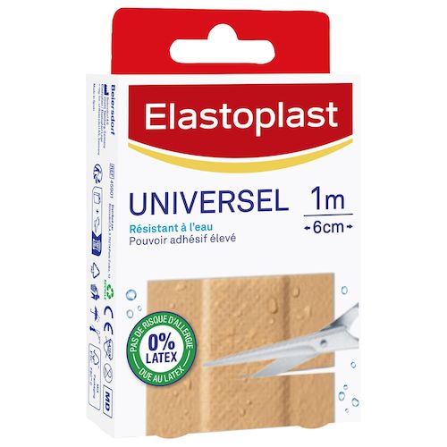 Les bandes Universel protègent les petites blessures quotidiennes telles que les égratignures, coupures et éraflures. Résistant à l'eau. Pouvoir adhésif élevé. 0% latex