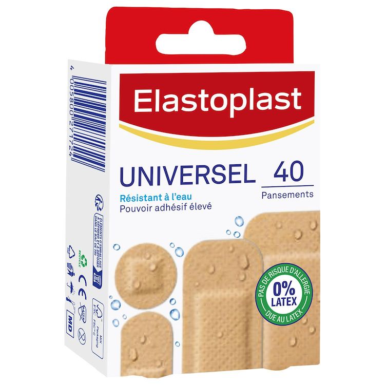 Les 40 pansements Universel apportent une protection résistante à l'eau pour les petites blessures quotidiennes telles que les égratignures, coupures et éraflures. Ces pansements sont également résistant à la saleté et ils permettent de laisser respirer la peau.