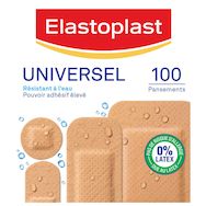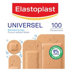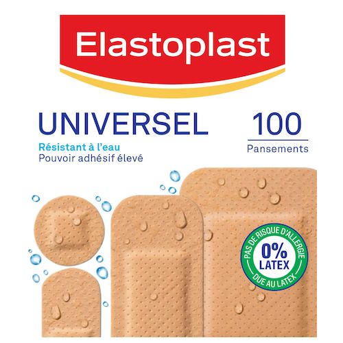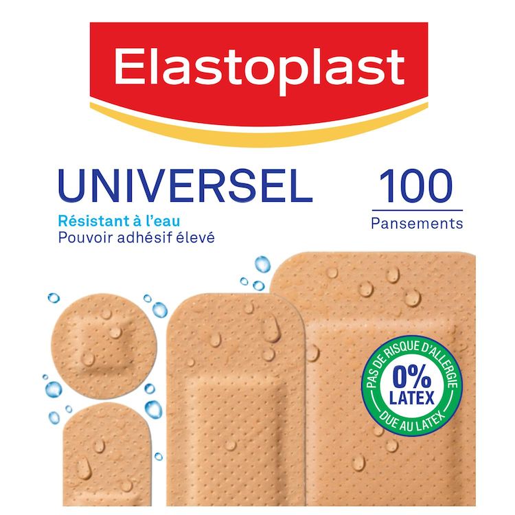 Les pansements Universel sont résistants à l'eau pour couvrir et protéger les petites blessures du quotidien. Ils ont un pouvoir adhésif élevé, ils laissent respirer la peau et sont résistants à l'eau et à la saleté. Ils disposent d'une compresse absorbante non collante. Utilisable pour divers usages. Conseil d'utilisation : Nettoyer et sécher délicatement la peau. Appliquer sans étirer. 0% Latex : pas de risque d'allergie due au latex