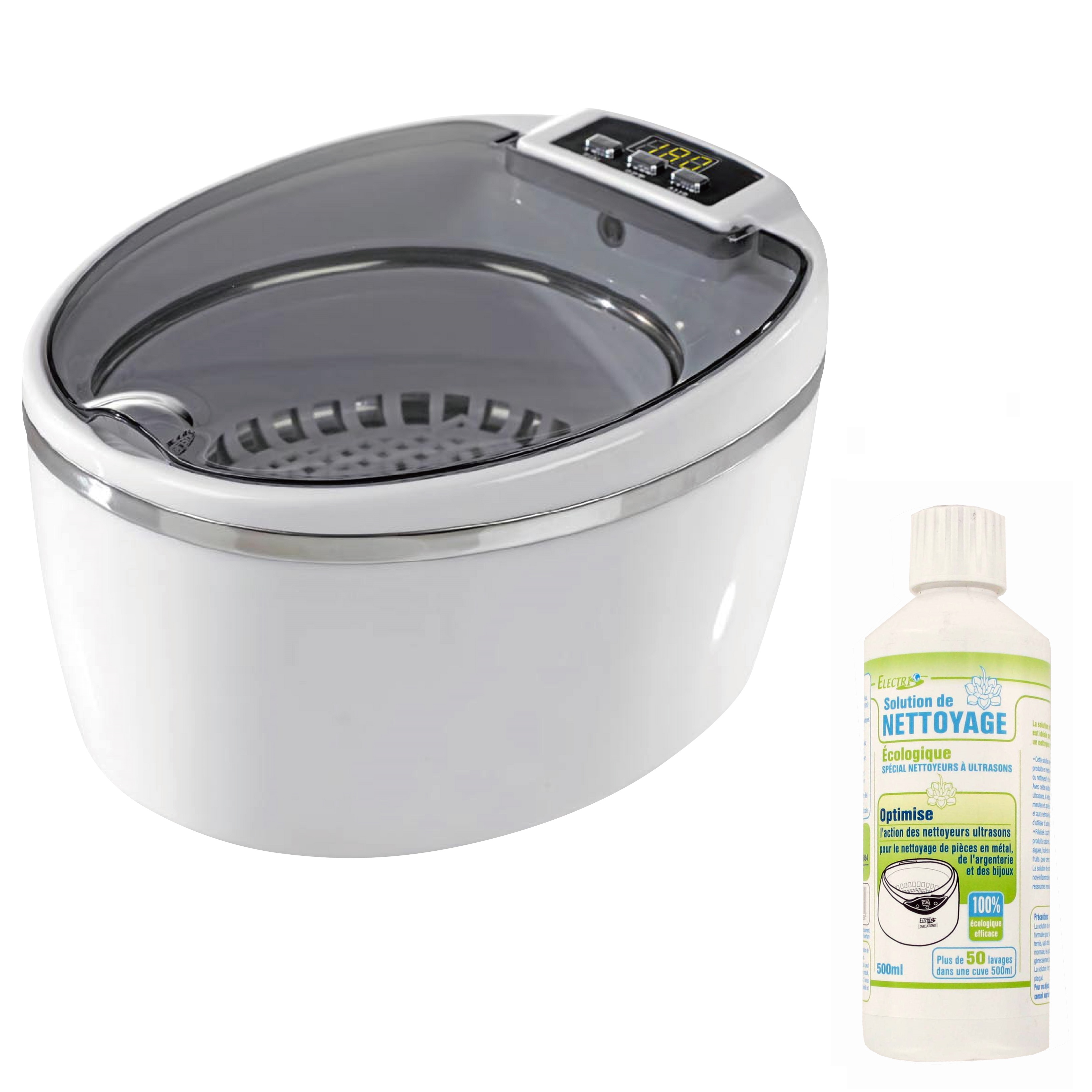 Pack nettoyeur à ultrasons 600 ml + 1 solution de nettoyage 500 ml