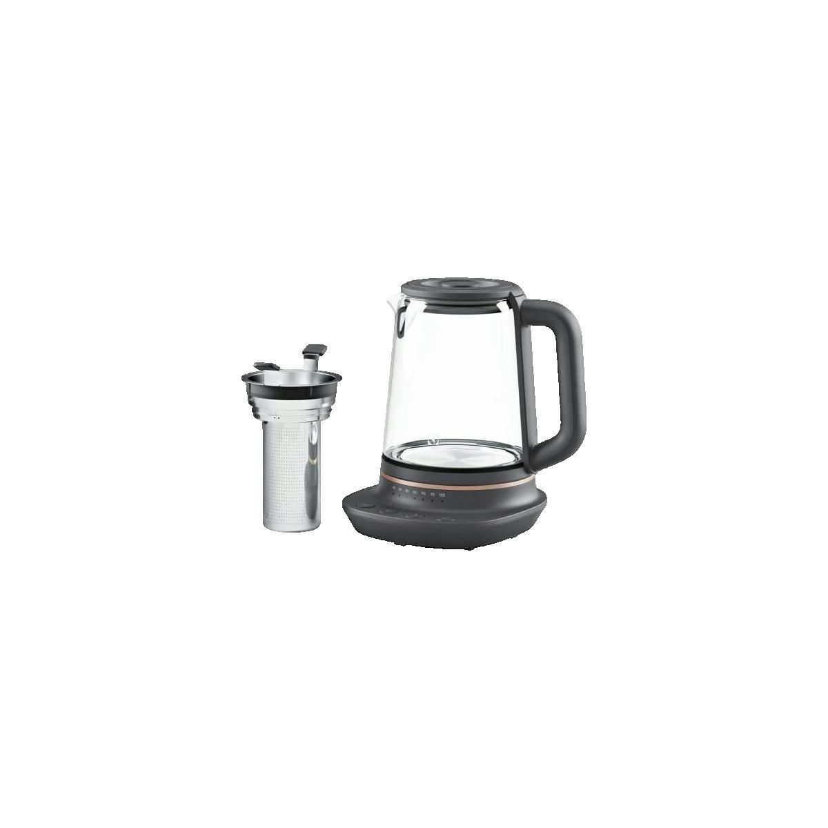 Découvrez la bouilloire électrique Electrolux Explore 7 E7GK1-8BP, conçue pour améliorer votre expérience de préparation de boissons chaudes. Avec une capacité de 1,7 litre et une puissance de 2000 W, elle assure une chauffe rapide. Elle dispose d'un système de contrôle de la température par intervalles de 5°C et d'une fonction maintien au chaud jusqu'à 40 minutes, idéale pour la préparation de thés et cafés. Fabriquée en verre de haute qualité, elle allie élégance et robustesse. Sécurisée avec pieds antidérapants, protection contre la marche à sec et arrêt automatique à ébullition, cette bouilloire est également équipée d'une base rotative à 360° et d'un filtre anti-calcaire.