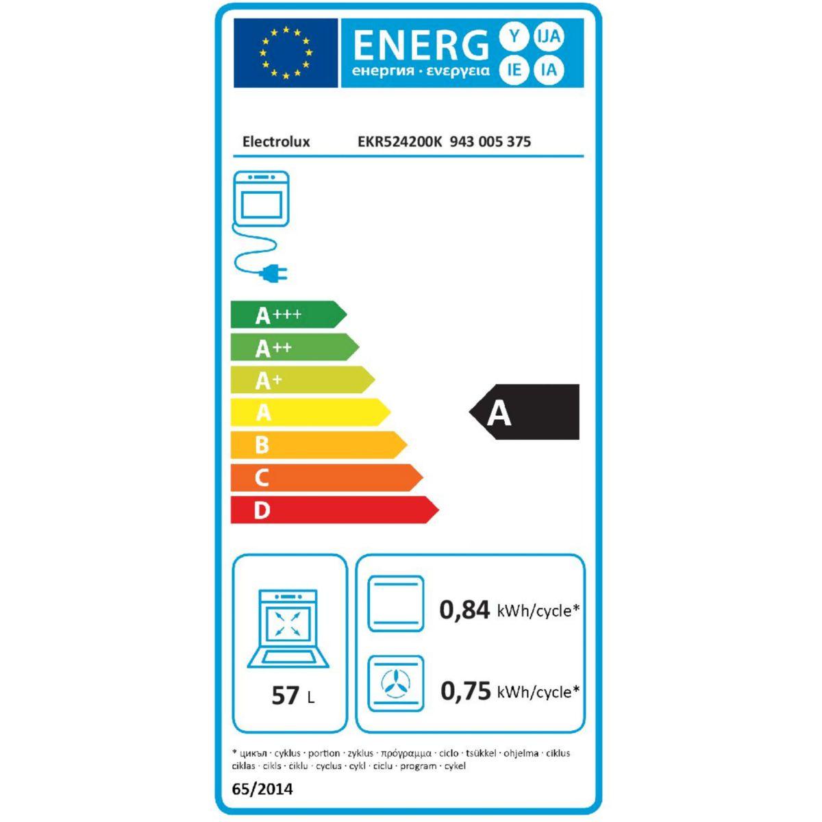 | Valeurs du label énergie | Label énergie A, Consommation en convection naturelle 0,84 kW, Consommation en chaleur tournante 0,75 kW | |