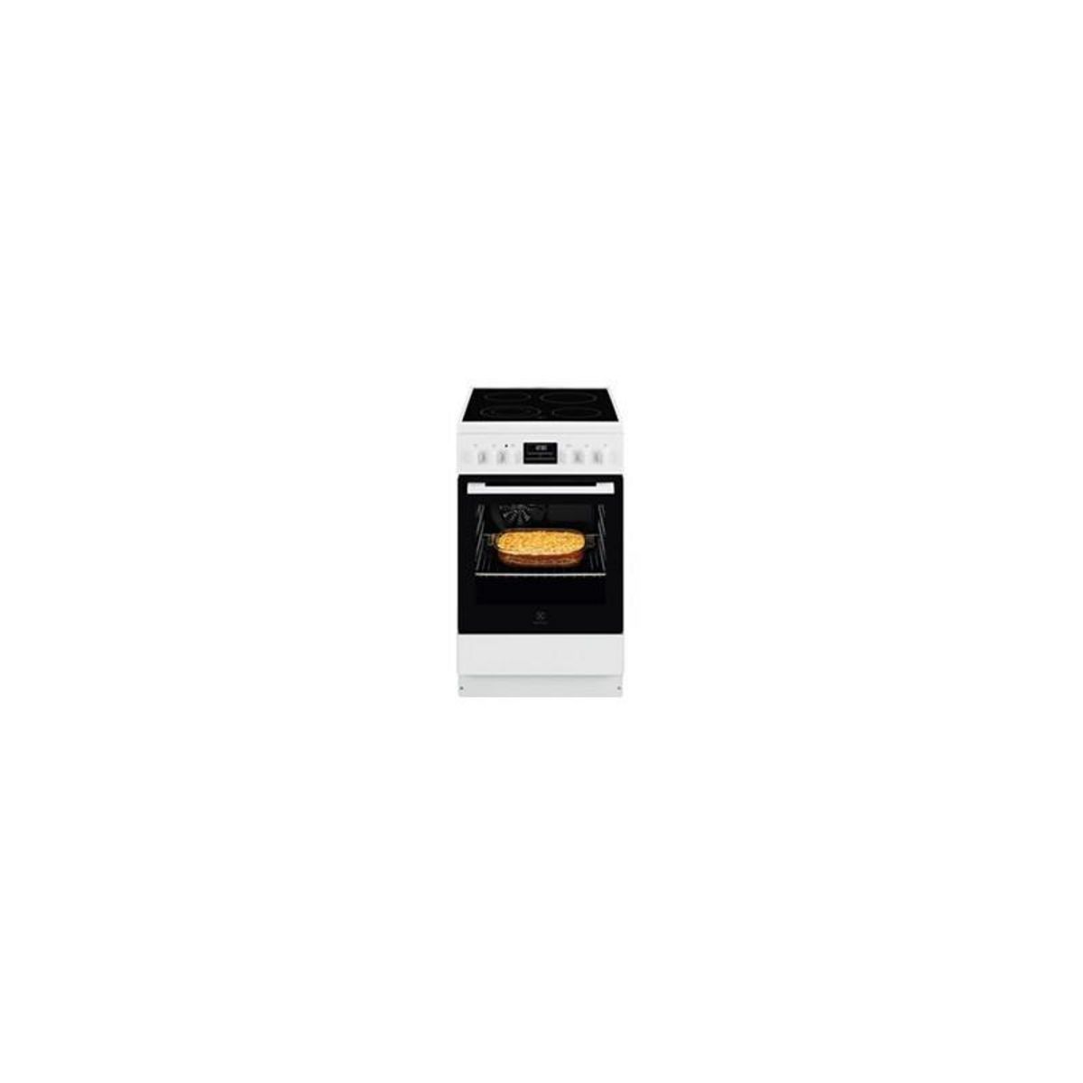 Cuisinière vitrocéramique Electrolux Electrolux LKR562066WCaracteristiques principales : Pays de fabrication : Roumanie.Origine de fabrication : Fabriqué en Europe.Dimensions : HxLxP : 85.8 x 50 x 60 cm.Fonctionnalités cuisinière : Programmable.Type de chaleur four : Chaleur tournante pulsée.Mode de