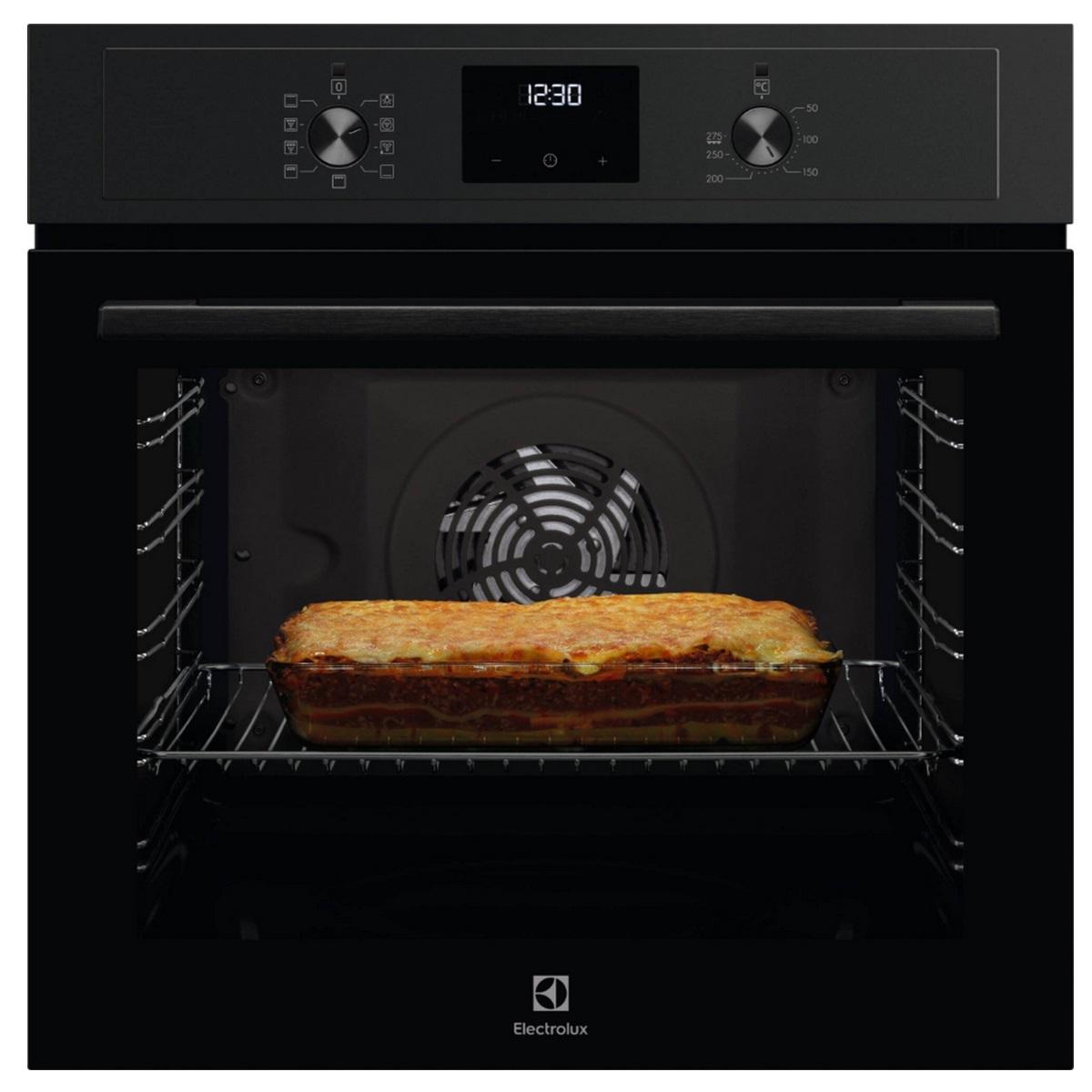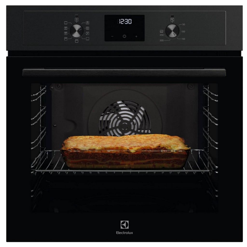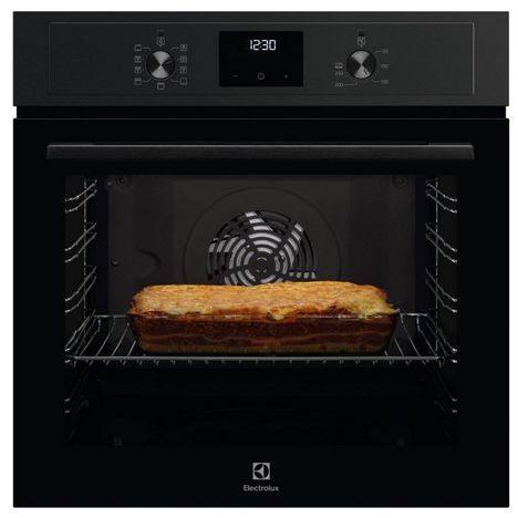 En savoir +Electrolux EOF3C40TH Four intégrable Electrolux EOF3C40TH pour des plats toujours délicieux. Grâce au four encastrable SurroundCook® Série 600, vos poulets rôtis ou vos meringues sont cuits de façon homogène. Le four s'assure que la température intérieure est régulière grâce à la chaleur tournante pulsée. Profitez d'une cuisson homogène sur plusieurs niveaux. La résistance annulaire supplémentaire vous permet de cuire uniformément sur plusieurs niveaux simultanément, quelle que soit la quantité à l'intérieur. Dîtes adieu aux amas de graisse et résidus grâce au nettoyage par catalyse. La technologie de nettoyage automatique démarre dès lors que la température du four atteint 250°C. Nettoyer son four devient un jeu d'enfant. Il est facile de suivre la progression de la cuisson de vos plats grâce à l'affichage LED du minuteur. Vous pouvez facilement régler les temps de cuisson exacts et surveiller vos plats durant la cuisson. Cela vous offre un contrôle total sur le four, de façon à pouvoir dévoiler votre créativité culinaire. La chaleur tounrnante pulsée fait circuler l'air à travers le four assurant une cuisson homogène. Plus besoin de remuer ou de retourner votre plat. Une cuisson plus rapide pour un gain de temps et d'énergie. Explorez l'univers du délice avec le plateau de cuisson XL pour plus de quantité. Faites place aux savoureux cupcakes du goûter entre amis. Plus de place pour plus de recettes.