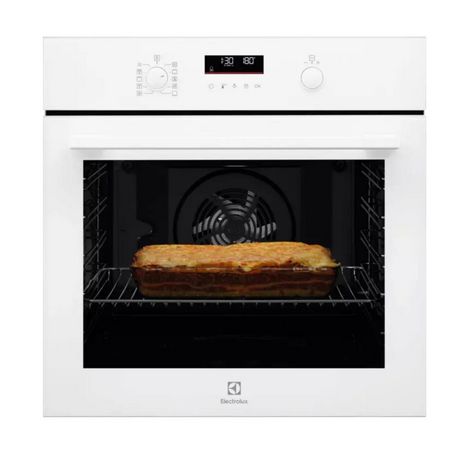 Electrolux EOF6P46V1 Four Encastrable Pyrolyse série 600 d'Electrolux EOF6P46V1. Grâce au four encastrable SurroundCook Série 600, vos poulets rôtis ou vos meringues sont cuits de façon homogène. Le four s'assure que la température intérieure est régulière grâce à la chaleur tournante pulsée. Profitez d'une cuisson homogène sur plusieurs niveaux. La résistance annulaire supplémentaire vous permet de cuire uniformément sur plusieurs niveaux simultanément, quelle que soit la quantité à l'intérieur. Gardez votre four encastrable naturellement propre grâce à la fonction de nettoyage par Pyrolyse. Il détruit toutes les projections de graisses grâce à une élévation de la température à 500°C. Récupérez les cendres et le tour est joué. Découvrez une nouvelle façon de cuisiner au four avec l'affichage LED EXPlore et ses boutons tactiles réactifs. L'interface évolutive vous offre un accès rapide et un contrôle dynamique du temps de cuisson, de la température et autres options. La chaleur tournante fait circuler l'air à travers le four assurant une cuisson homogène. Plus besoin de remuer ou de retourner votre plat. Une cuisson plus rapide pour un gain de temps et d'énergie. Une fournée suffit Explorez l'univers du délice avec le plateau de cuisson XL pour plus de quantité. Faites place aux savoureux cupcakes du goûter entre amis. Plus de place pour plus de recettes.