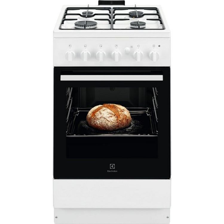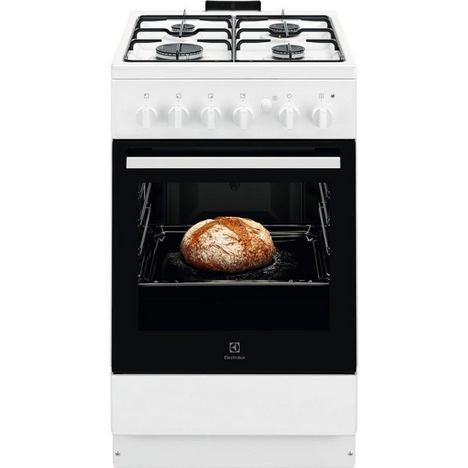 Gazinière Electrolux LKG500013WCaracteristiques principales : Pays de fabrication : Roumanie.Dimensions : HxLxP : 85.5 x 50 x 60 cm.Origine de fabrication : Fabriqué en Europe.Type de chaleur four : Convection Naturelle.Nombre de fours : 1.Nombre de foyer(s) : 4.Type de nettoyage du four : Manuel.Vo