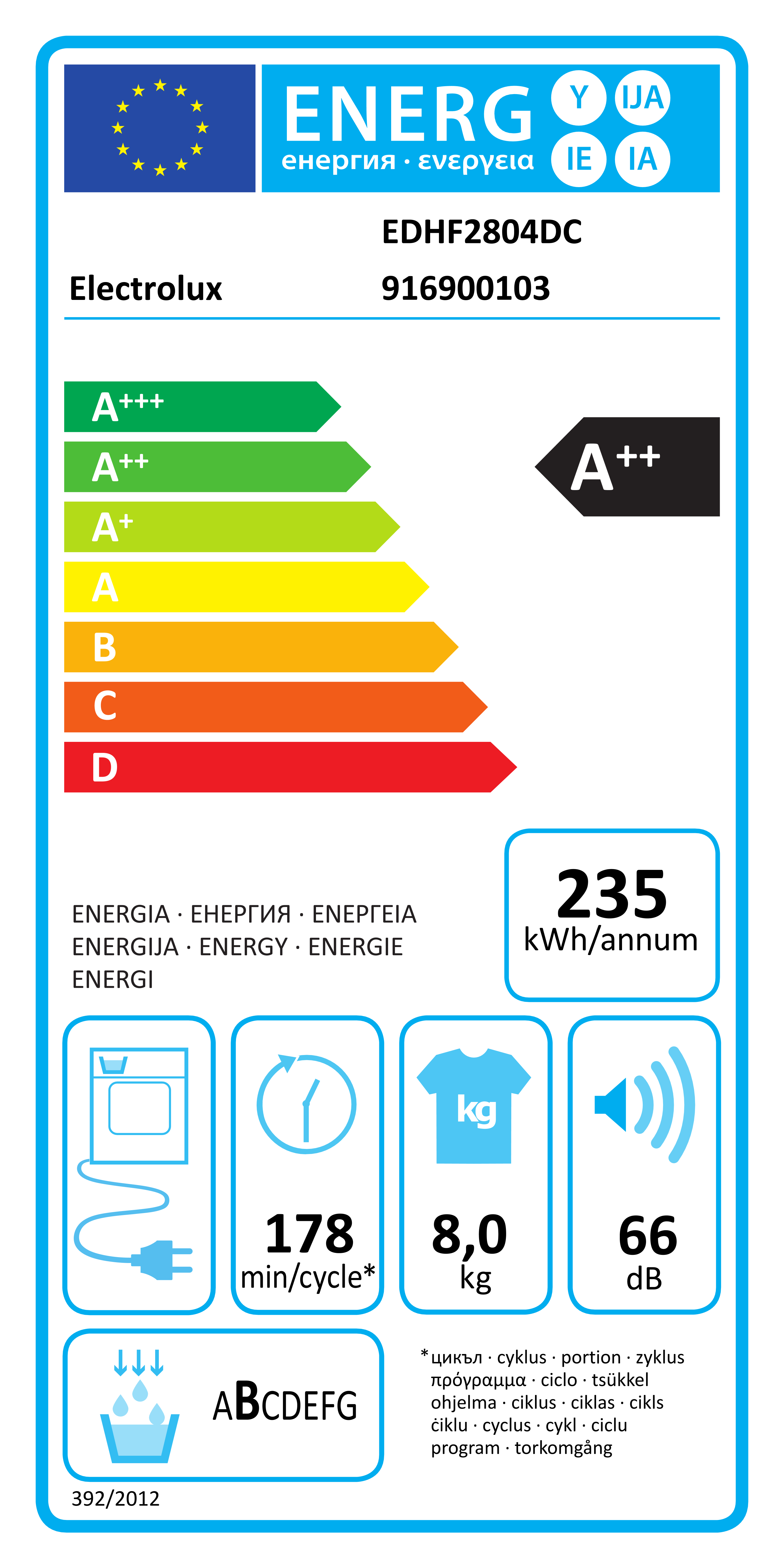 Electrolux EDHF2804DC Sèche-linge pompe à chaleur avec condenseur EDHF2804DC de Electrolux.
