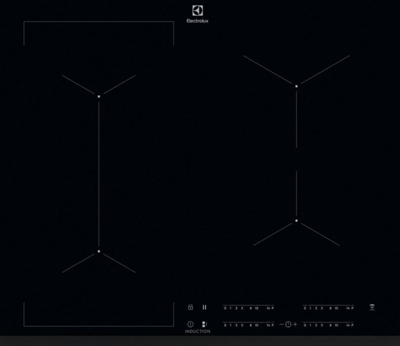 Electrolux EIV63443 La fonction Bridge de cette table induction Electrolux EIV63443 vous permet de combiner deux zones de cuisson en une seule plus grande. La température et les paramètres de temps sont synchronisés automatiquement. Idéal pour vos planchas!Détecte automatiquement la taille et la for