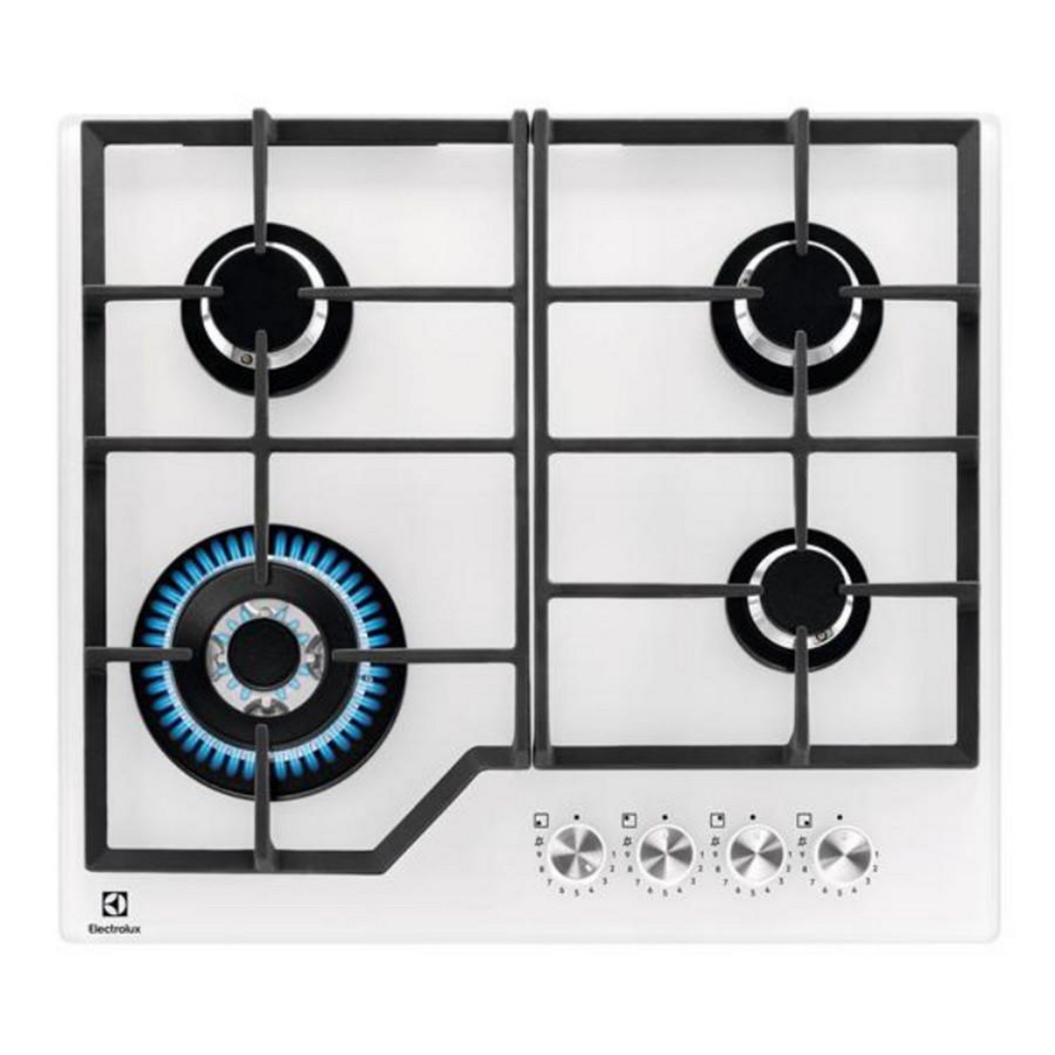 Electrolux KGG64362W Table de cuisson gaz Série 600 Electrolux KGG64362W dotée de 4 brûleurs dont 1 multicouronne 3,9 kW. Avec les brûleurs Speed Burners et leur flamme directe, économisez 20% d'énergie pour une cuisson plus rapide. Gérez la flamme de votre table de cuisson au gaz avec précision grâ