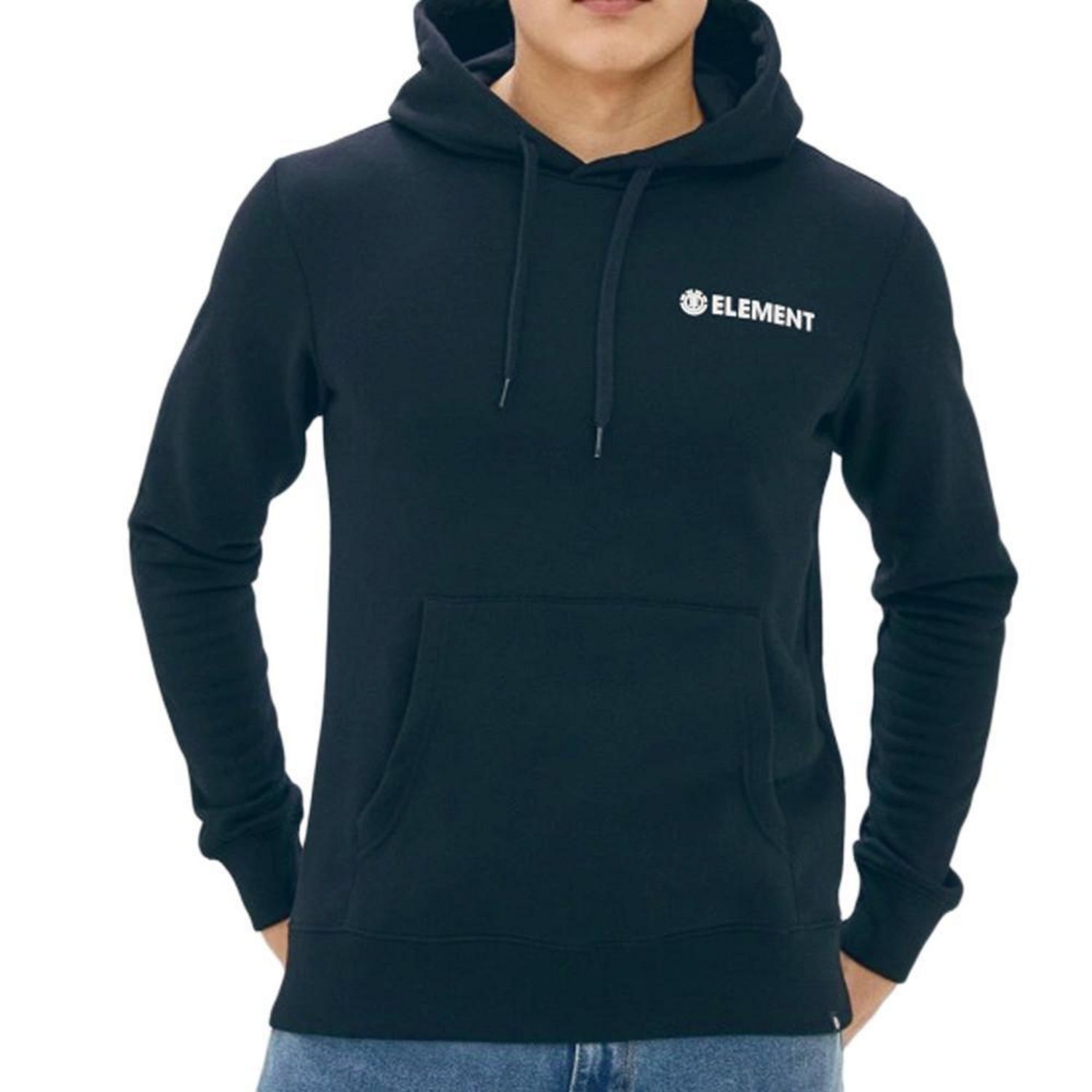 Optez pour ce sweat de la marque Element ! Matière : matière molletonnée brossée en coton et polyester Petit imprimé sur la poitrine Coupe : coupe regular Composition 60% Coton, 40% Polyester Coloris : marine Avec capuche
