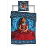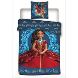 Parure housse de couette enfant + 1 taie d'oreiller en microfibre. Un adorable linge de lit à l'effigie d'ELENA D'AVALOR, à offrir pour le plaisir de voir briller les yeux de notre princesse à nous ! Et pour les mamans, une parure facile à vivre qui sèche vite et ne demande qu'un très léger repassag