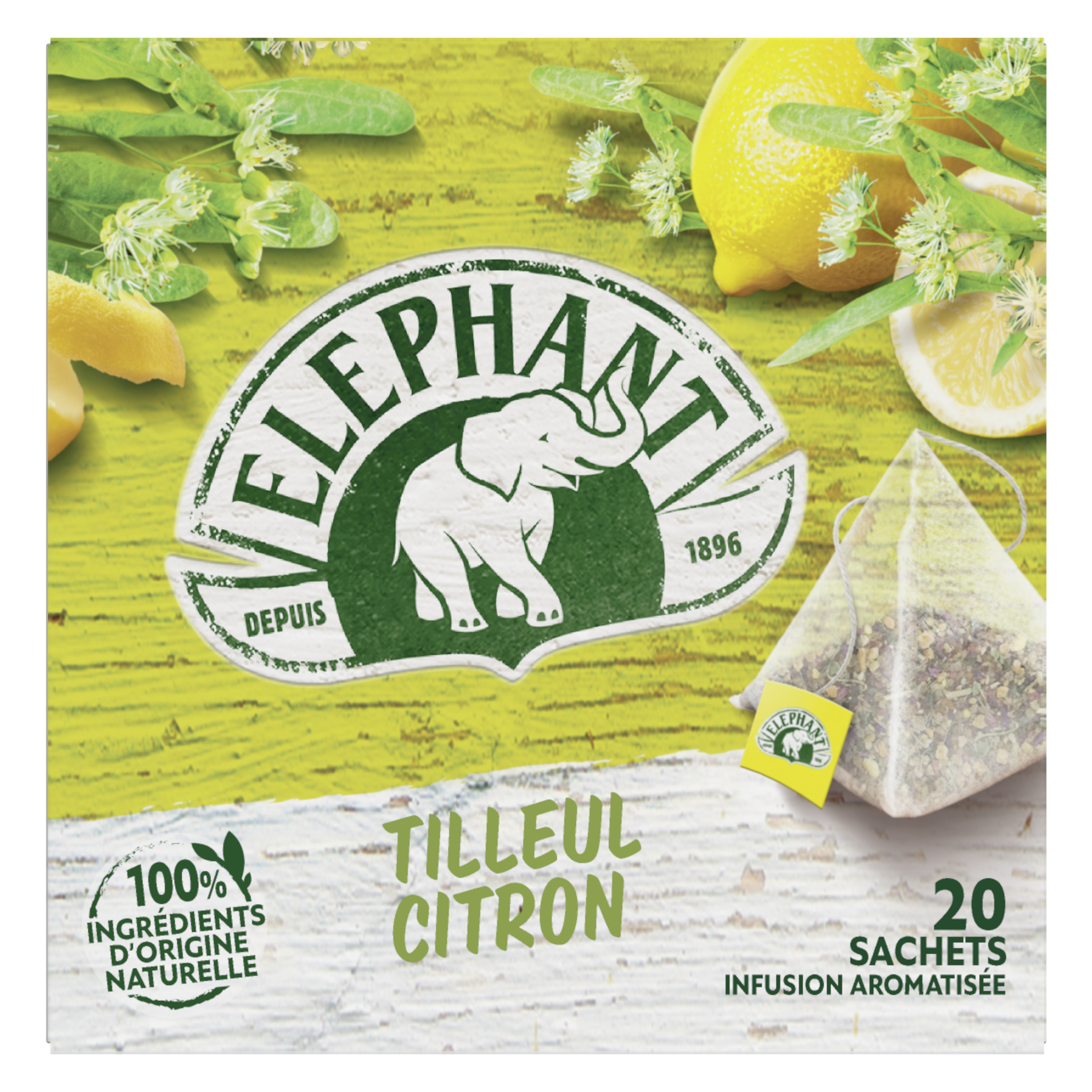 Ingrédients tilleul (51%), feuilles d'oranger, arôme naturel (15%), verveine, écorces de citron (2%).