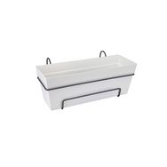 La balconnière avec support pour balcon convient pour les balustrades dotées de rambardes jusqu'à 6 cm de large. Pour son utilisation, elle possède un réservoir d'eau pour récupérer l'eau et nourrir les racines par capillarité. Très pratique, cette balconnière en plastique permet de limiter les arrosages et de conserver les racines humides et au frais.