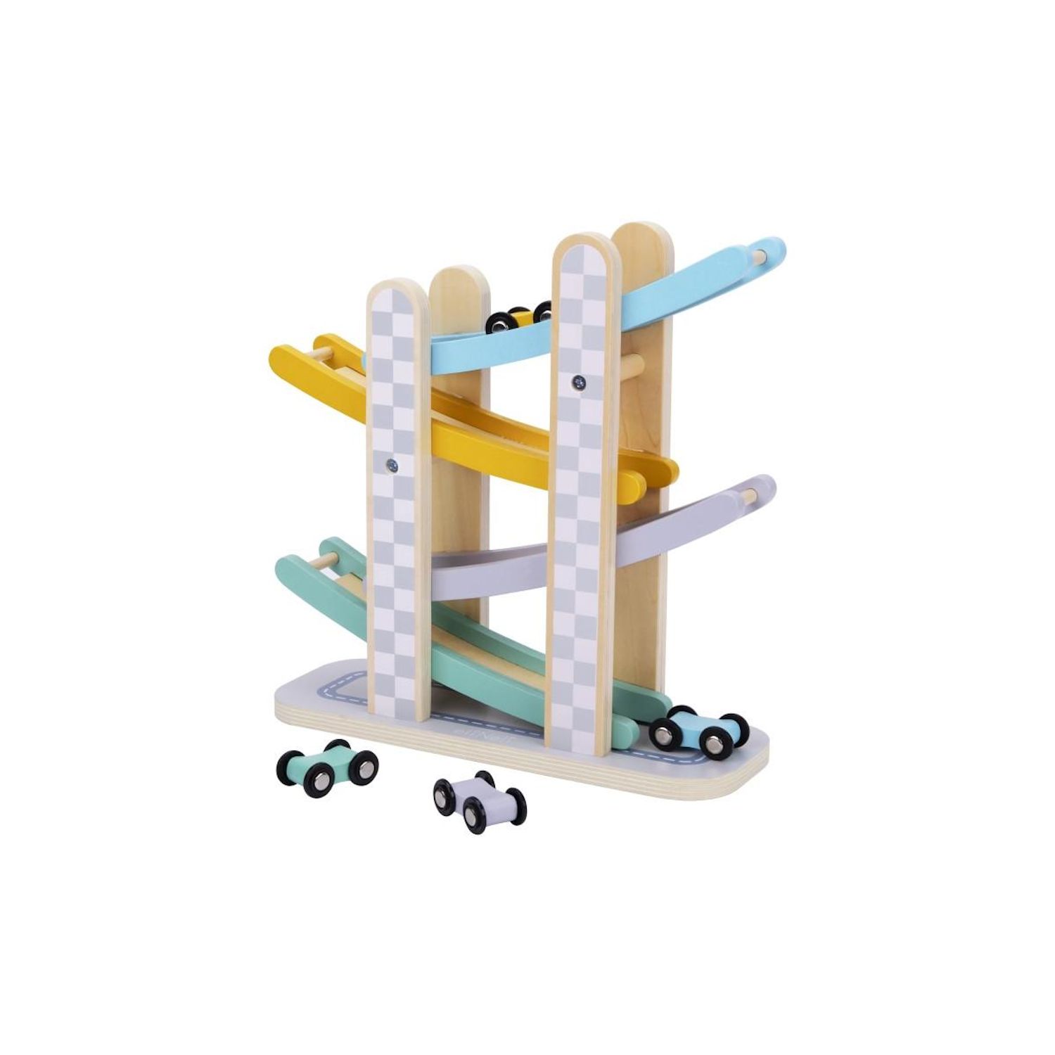 Une piste de course en bois (car track) avec des voitures aux belles couleurs pastel fera le bonheur des garçons comme des filles. Découvrez la piste en bois avec des voitures de course.
