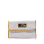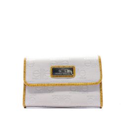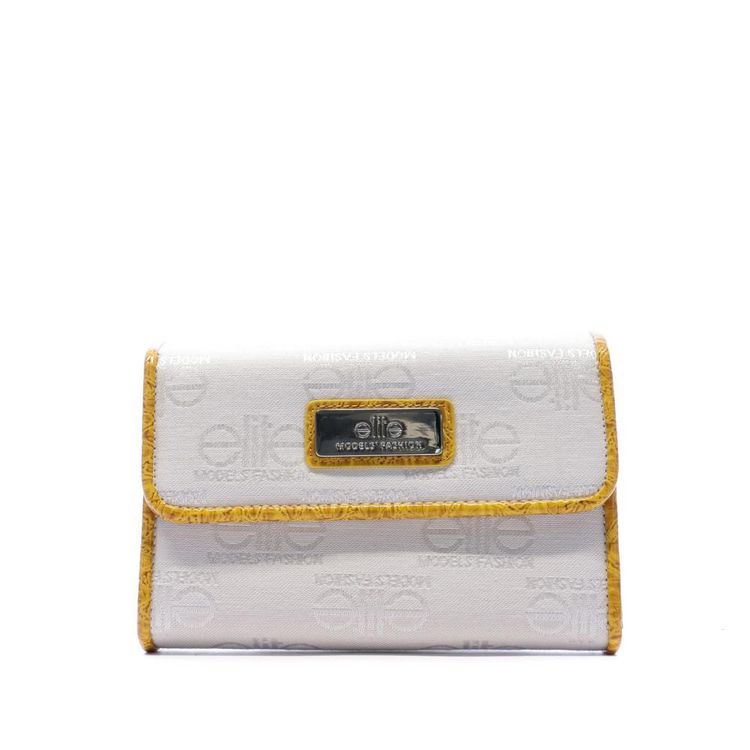 Portefeuille femme de la marque Elite Fermeture à rabat Plusieurs rangement cartes/monnaie Coloris : Blanc/ Jaune foncé Badge métal Dim : 15 x 10 x 4 cm