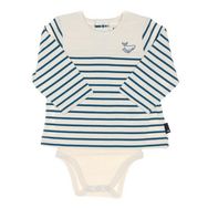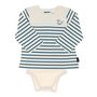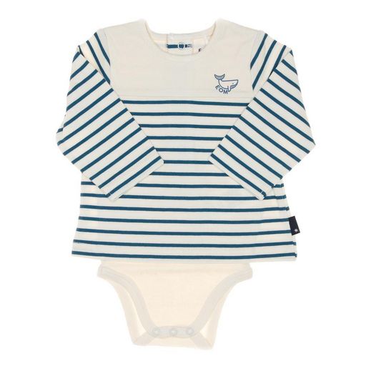 Body t-shirt garçon de la marque Elle est ou la mer !Manches longuesCol rondBoutons dans le dos et sur le bas RayuresColoris : Turquoise/BeigeLogo baleineComposition : 100% coton