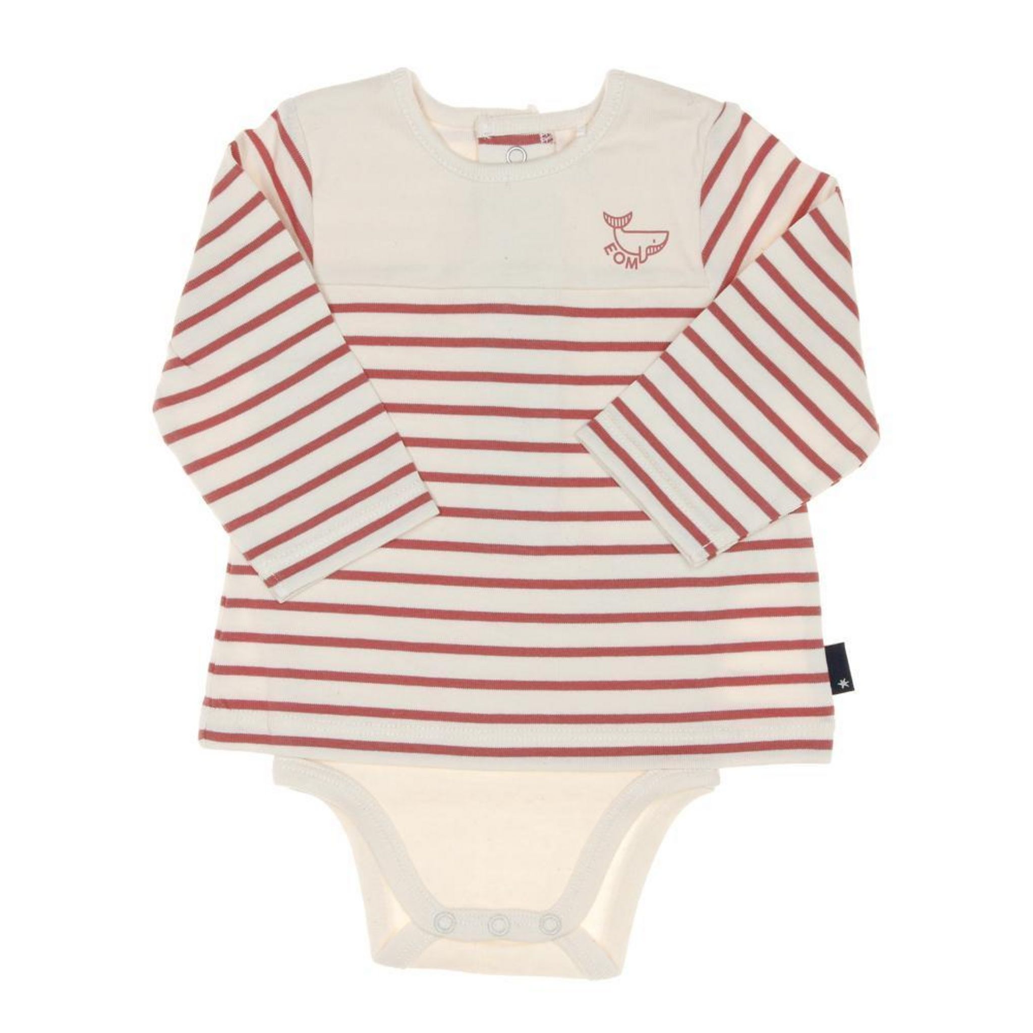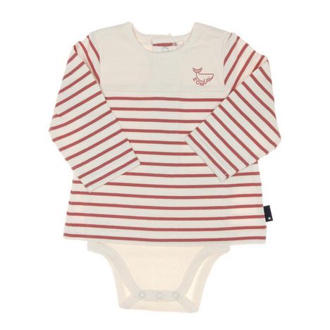 Body t-shirt garçon de la marque Elle est ou la mer !Manches longuesCol rondBoutons dans le dos et sur le basRayuresColoris : Rouge/BeigeLogo baleineComposition : 100% coton