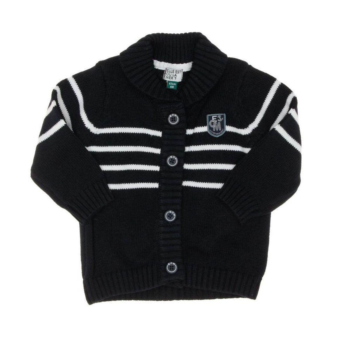 Craquez pour le gilet fille Elle est ou la mer !Manches longuesFermeture à boutonsCol claudineMarinièreMailleColoris : Blanc/BleuComposition : 100% coton
