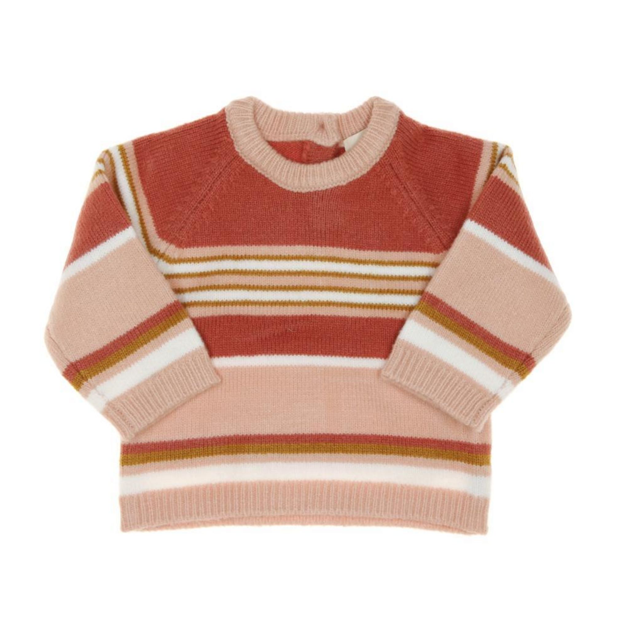 Optez pour le pull fille Elle est ou la mer !Manches longuesCol rondColoris : RoseRayuresMailleBoutons dans le dosComposition : 64% acrylique , 33% nylon , 3% laine