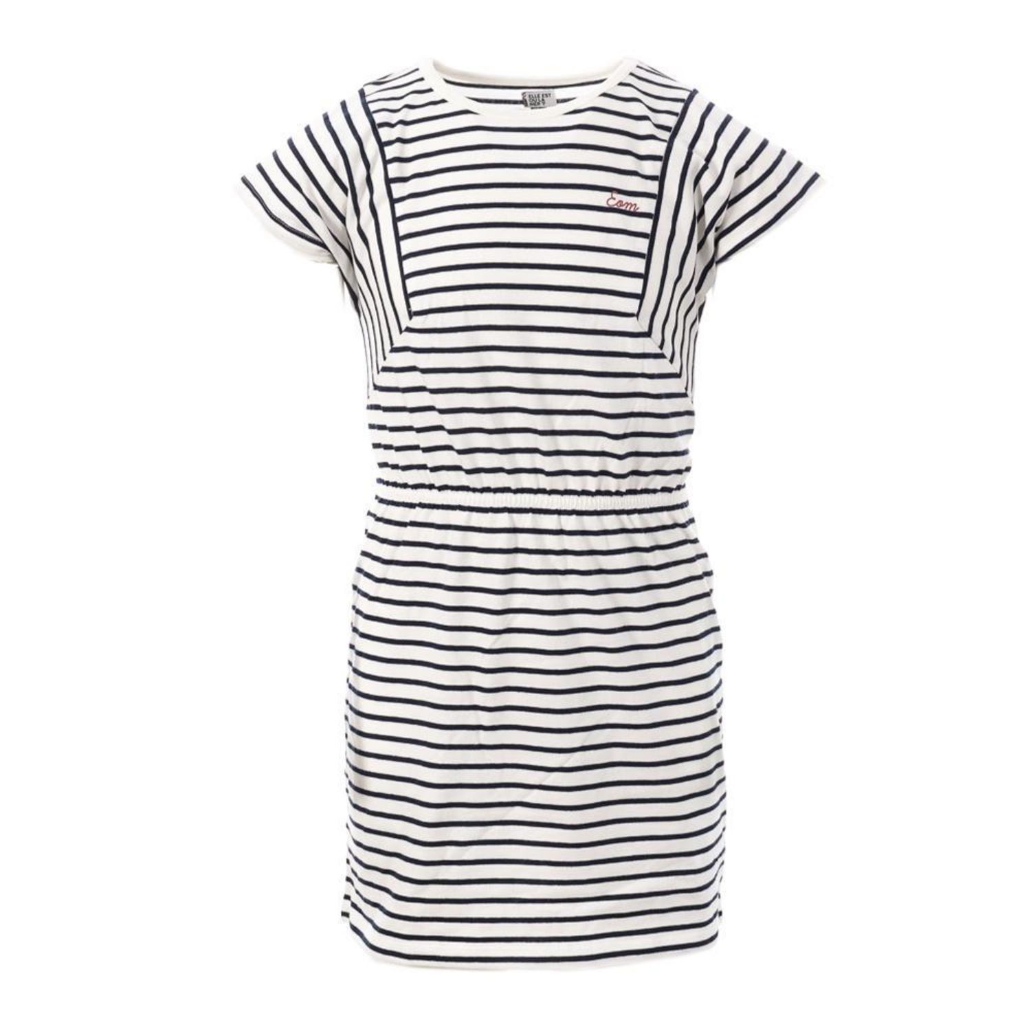 Optez pour la robe fille Elle est ou la mer !Manches courtesCol rondTaille élastiqueRayuresColoris : Marine/BlancComposition : 100% coton