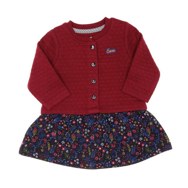 Optez pour la robe fille Elle est ou la mer !- Manches longues- Col rond- Coloris : Rose/Marine- Fleurs- Boutons pressions sur l'avant- Composition : 75% coton , 25% polyester