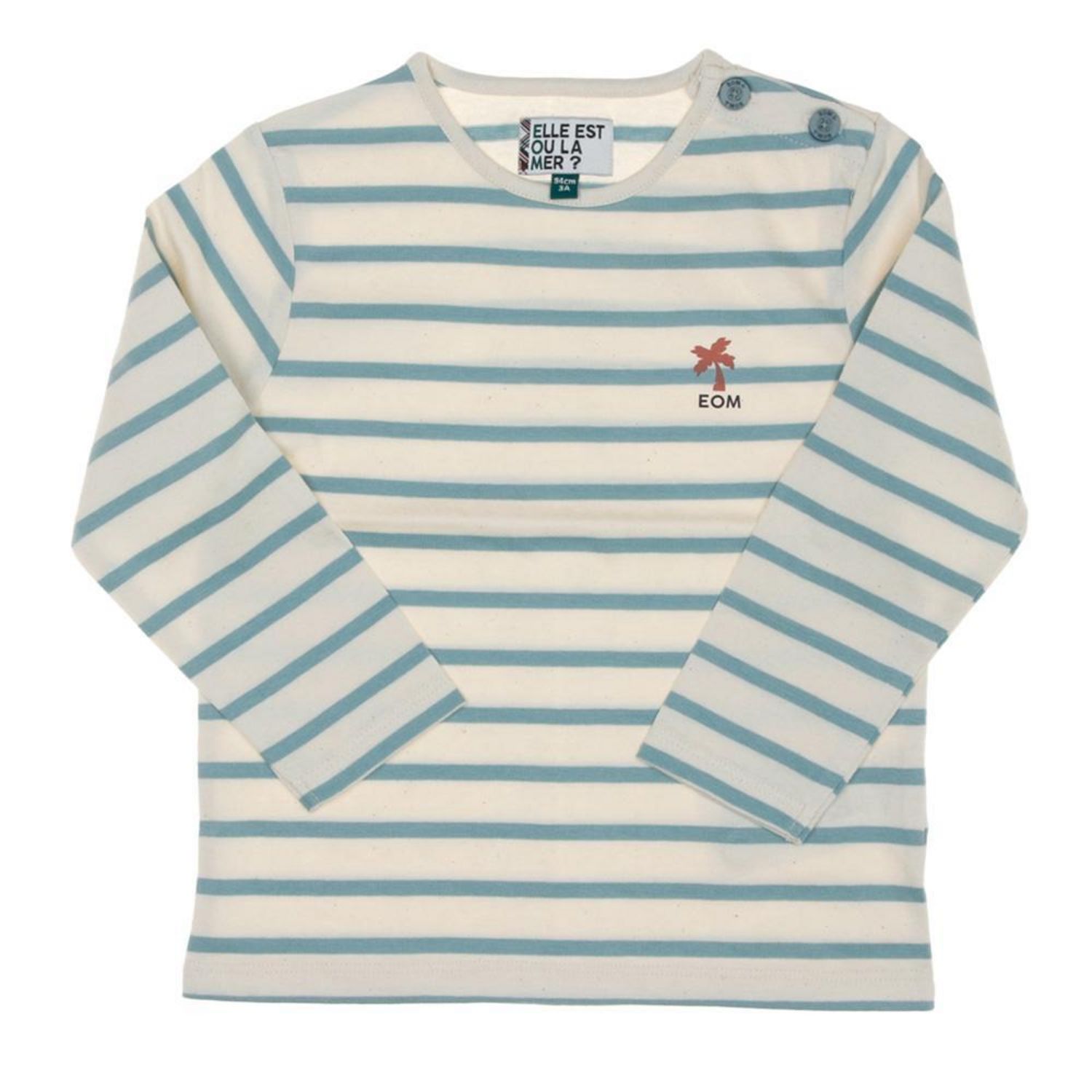 Craquez pour le t-shirt de la marque ELLE EST OU LA MER !Coloris : Blanc/TurquoiseCol rondManches longuesRayures2 boutons à l'épauleComposition : 100% Coton