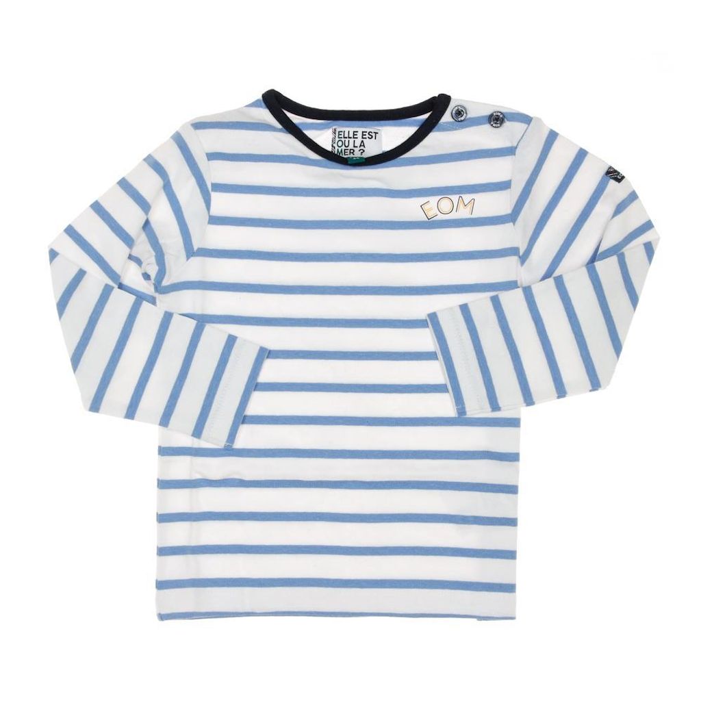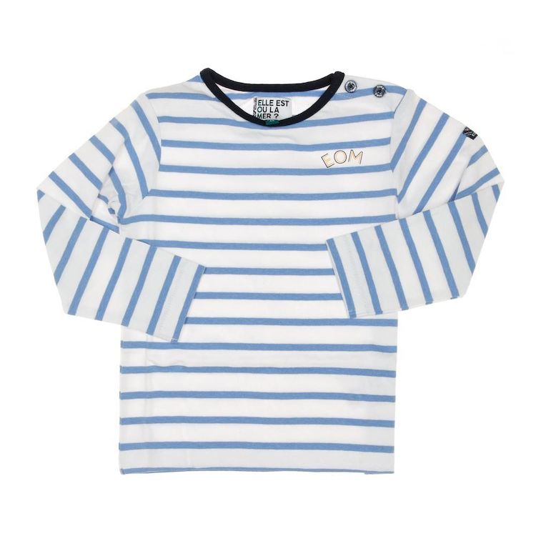 Craquez pour le t-shirt de la marque ELLE EST OU LA MER !- Coloris : Blanc/Bleu- Col rond- Manches longues- Rayures- 2 boutons à l'épaule- Composition : 100% Coton