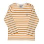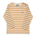 Craquez pour le t-shirt enfant de la marque Elle est ou la mer !Manches longuesCol rondDessin brodéColoris : Jaune/BeigeRayures2 boutons sur l'épauleComposition : 100% coton