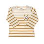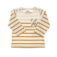 Optez pour le t-shirt garçon Elle est ou la mer !Manches longuesCol rondColoris : Jaune/BeigeRayures1 poche avec pico pieuvreBoutons pressions sur les épaulesComposition : 100% coton